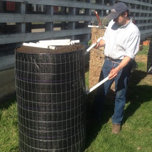 Choosing cost-effective materials: There are several different types of materials that can be used to create the rigid, cylindrical, or rectangular structure for growing towers. Each material will vary in cost and availability. Welded-wire, for instance, which is used widely by the Rodale Institute, comes in all shapes and sizes. The most cost effective option for welded-wire is one that has a cell size of 2×4 inches. The height of the wire ranges from 3-6 feet and the price adjusts accordingly as the height increases. Other pliable wire such as chicken wire can also be used but this material is less rigid and may buckle under the weight of the soil. Chain-linked fencing is common in city areas and could be adapted into a growing tower with permission from the owner. When building your tower, creativity could be your best tool.