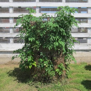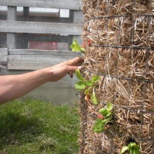 The growing towers are simple structures where the space available for plant production is built vertically in a column or rectangular wall. The structure is held in place using weld-wire, carpenter’s mesh, or chain-linked fencing. The height and diameter can vary depending on space availability and plant production needs. A material such as gardening cloth, straw, light-weight fabric or thin cardboard is placed on the inner periphery of the tower to minimize soil loss. The tower is then backfilled with clean compost-amended topsoil. Fruits, vegetables, herbs and flowers can be transplanted into the sides of the tower while transplanting or direct-seeding can occur in the top of the tower after the structure is built and ready for production. Maintenance and other common gardening practices would apply after the column is established and production is underway.