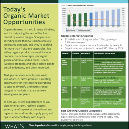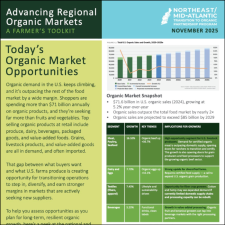 This four page guide aims to support Mid-Atlantic farmers in unlocking more regional production of high-demand organic crops, reduced dependence on imports, and more resilient U.S. supply chains rooted in local identity through data, insights, and opportunity analysis.