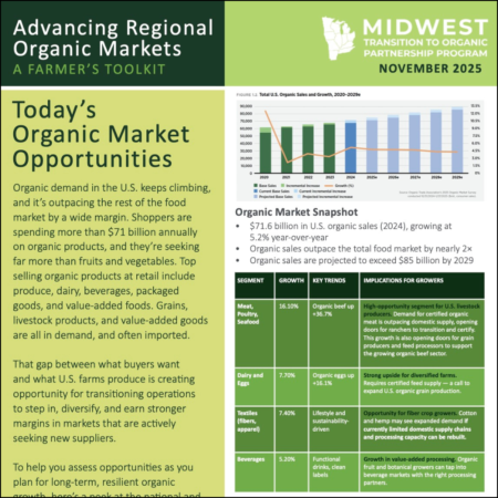This Resource Guide outlines best practices, considerations, buyer information, and further resources for navigating organic grain markets, especially for farmers located in Iowa, Illinois, Indiana, Michigan, Minnesota, Ohio, and Wisconsin.