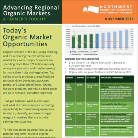This four page guide aims to support Northwest farmers in unlocking more regional production of high-demand organic crops, reduced dependence on imports, and more resilient U.S. supply chains rooted in local identity through data, insights, and opportunity analysis.