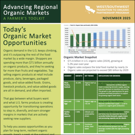 This Resource Guide outlines best practices and considerations for navigating organic markets for organic commodities and livestock markets.